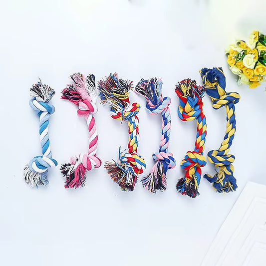 Random Color Pet Dog Toy Bite Rope Double Knot Cotton Rope Funny Cat Toy Bite Resistant and Sharp Teeth Pet Supplies Puppy Toys